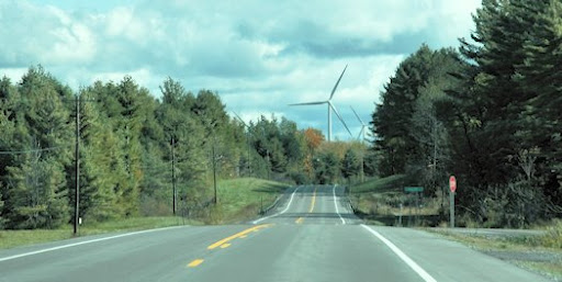 This is Maple Ridge Wind Farm. We pulled off on a side road to get a better look. There are about 200 of them – called wind turbines actually and each one cost about $2.5 million to build, generating enough power for around 500 homes. The land they stand on is mostly leased, much of it from farmers who reap beteween $5,000-10,000 per year per turbine. An economic boost for family farmers who are finding it more difficult to stay in business as their costs rise.