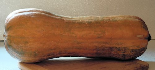 This is another “Argonaut”, like Sylvester, but at a mere 14 pounds he is a pale shadow of our new adopted family member. “Argonauts” are a butternut type squash, but one that abused steroids. I was really beginning to worry about them as we watched them grow bigger and bigger over the summer. Could anything so large still be tasty? Oh yes. We got our seeds from Gurney, but I believe other companies carry them as well.