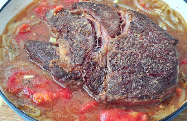 Why ale for braising a pot roast? Because the flavors are SO good together, and the ale, along with the tomatoes, helps to tenderize the beef. This is actually an update on the pot roast I used to make when we were first married. That one had ingredients that I just don’t use anymore, like onion soup mix and jarred spaghetti sauce. I have given up all of those prepared foods, in favor of the simpler, more delicious flavors of unprocessed stuff. Which meant the pot roast recipe had to undergo a transformation, and this is it – a basic method that you can use as a jumping off point to add other flavors, and change things up so you never get bored eating the same old thing.